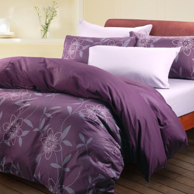 【Famttini-沉靜風姿.紫】加大精梳棉六件式被套床包組