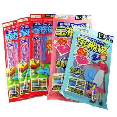 寶衣袋(40x60cm)商品介紹~~ 本產品以最新技術生產而成,特有的雙排密封夾鏈設計,提供您收藏及操作的方便性、耐用性。 外出旅行時攜帶大量衣物讓您傷透腦筋嗎,有了衣物壓縮袋您可以輕鬆減少衣物佔用空間 ,放置更多重要隨身物品喔!不需要吸塵器吸口來幫助排氣,輕輕一捲即可使用! |