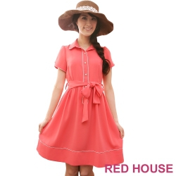 RED HOUSE-蕾赫斯-襯衫領甜美風洋裝(桃粉)