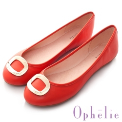 Ophelie-美感革命-金屬方飾釦羊皮平底娃娃鞋~注目紅