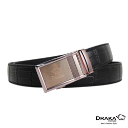 DRAKA 達卡 - 雅痞時尚男 頂級牛皮自動皮帶 鱷魚紋(墨黑) 8938403 法國經典皮件品牌 Draka 達卡,帶身嚴選頂級牛皮材質製成,硬挺度適中,車工精緻而細膩,搭配高級金屬材質帶頭,完美工藝,展露無遺。