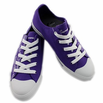 Burnetie女款 骷顱頭低筒帆布鞋(紫白)