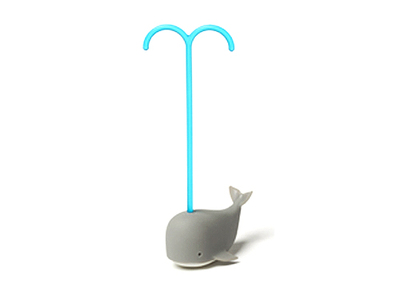設計師巧妙的將鯨魚噴出的水注設計為攪拌棒與鯨魚泡茶器結合一起,