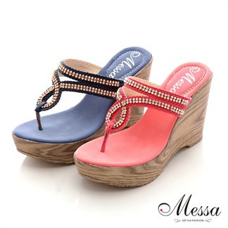 7net購物網Messa米莎 (MIT)魅力扭轉水鑽楔型涼拖鞋-兩色_1
