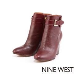 NINE WEST 暖秋人氣嬌點 條帶裝飾皮革楔型踝靴-溫暖棕紅