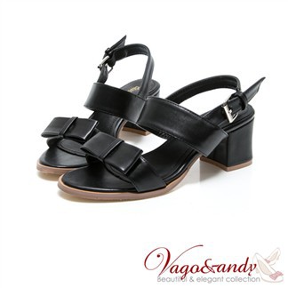 【VAGO&ANDY】輕甜裝扮立體蝴蝶結粗跟涼鞋(黑)
