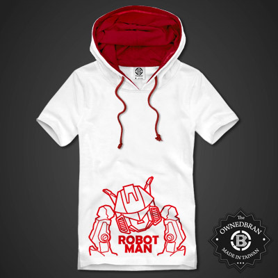 T恤推薦歐布德-探頭金剛機器人連帽短Tee(白紅款)