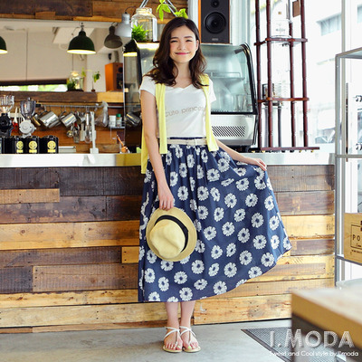 服裝推薦OB嚴選-【顯瘦下著-單件75折】森林感~附皮帶小雛菊印花長裙-2色