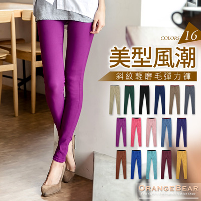 服裝推薦OB嚴選-美型風潮~斜紋輕刷毛彈力貼身立體剪裁長褲.16色
