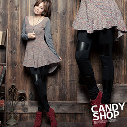 【candy小舖】街頭潮流獨創梯型接皮棉質內搭褲 冬季低調冷酷的時尚風格 穿出米蘭設計師的品味 獨特梯型造型接皮增添好評話題