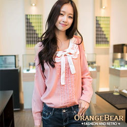 【OB嚴選】綁結繡花娃娃領挖肩長版雪紡襯衫 添加女孩最喜歡的元素在裡頭,