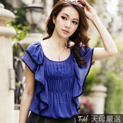 【天母嚴選】微醺魅力‧荷葉袖造型雪紡衫(共二色) 130221 from Tianmu on Vimeo.