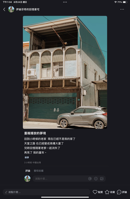 常常夢見我回到這間老家 看見爸爸拉開鐵捲門 站在門口 唸著我怎麼還沒回家 我總是淚流滿面 想抱住爸爸的身軀 始終在這節點 甦醒過來 這樣的夢境 爸爸還活在夢裏 年復一年 日復一日 這個夢我已經...