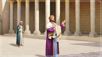 耶穌向那些仗著自己是義人,藐視別人的,設一個比喻,說:「有兩個人上殿裡去禱告:一個是法利賽人,一個是稅吏。法利賽人站著,自言自語地禱告說:『神啊,我感謝你,我不像別人勒索、不義、姦淫,也不像這個稅吏。我一個禮拜禁食兩次,凡我所得的都捐上十分之一。』那稅吏遠遠地站著,連舉目望天也不敢,只捶著胸說:『神啊,開恩可憐我這個罪人!』我告訴你們,這人回家去比那人倒算為義了。因為,凡自高的,必降為卑;自卑的,必升為高。」