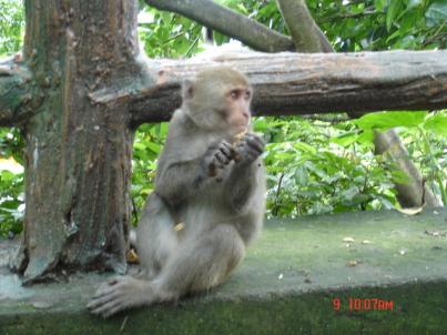 這是拍的唯一一張比較近的猴仔照片!這裡是台南的猴仔山,山上的猴子果然都特別野@@!猴子遠眺著遠方,大概在搜尋哪裡還有食物可以吃吧= =啊哈~!猴子也是會挖鼻孔的。這隻是小小猴,超級可愛的啦!! 可是...