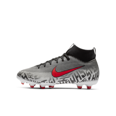 Nike Jr. Mercurial Superfly VI Academy Neymar Jr. 小/大童多種場地足球釘鞋以 Dynamic Fit 鞋領和合成皮革鞋面包覆雙足,穿上新鞋立即可感受到俐落服貼的著感。適用於多種場地的鞋盤不僅具有多功能,而且無論在天然草皮或人工草皮場地,都能提供優異抓地力。細緻作工完美體現 Neymar 流暢、優美又充滿節奏感的巴西派打法。