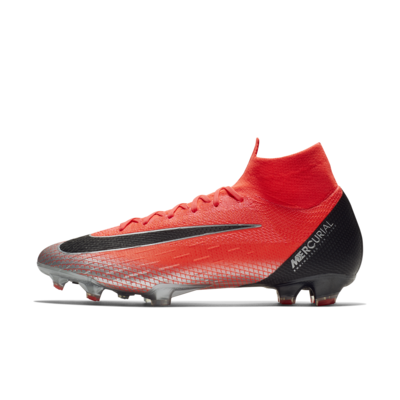 Nike Mercurial Superfly 360 Elite SE FG 以 Flyknit 鞋面包覆腳底,展現猶如第二層肌膚的貼合感,細節混搭過去 Mercurial 鞋款的設計元素,紀念 Ronaldo 和本系列的淵源。