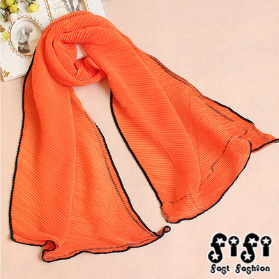 【FIFI飛時尚】糖果色包邊雪紡絲巾 圍巾 防曬空調披肩(橘)