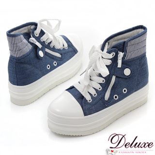 【☆Deluxe☆】休閒新潮-復古仿丹寧布綁帶拉鏈高筒休閒鞋★藍2015春新款流行女鞋年前上架,讓你一雙美鞋度新年!經典品牌鞋款,韓國潮品,多種樣式穿出屬於妳的風格!【☆Deluxe☆】休閒新潮-復古...