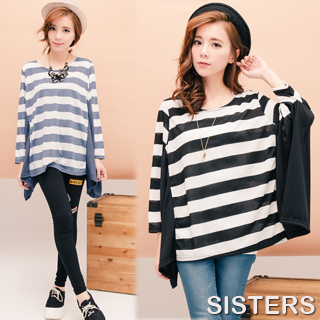 商品網址:【SISTERS】寬條紋拼接色塊T恤上衣(共二色)