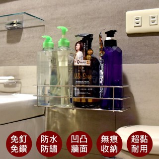 商品訊息描述『絕不生鏽不鏽鋼』『防水無痕超級黏膠貼片』地表最強收納神器!■產品特色:一般市售可重複貼式貼片僅能貼於光滑平整表面,承載力較弱,且會愈貼愈不黏!【易立家生活館】專賣超級黏膠無痕掛勾,能貼在不規則或不光滑表面,不需輔助貼、不殘膠。搭配食品級不鏽鋼架,防水防鏽、絕對耐用!■適用牆面:玻璃、磁磚、不鏽鋼板、烤漆板、板、壓克力板、木板、水泥油漆牆、石牆、有紋路的牆面皆可。■使用說明:務必清潔過牆面,確保牆面乾淨、乾燥再貼上貼片,可用吹風機吹「熱」貼片及牆面約分鐘,軟化後的貼片會跟牆面更服貼,並將空氣完全擠出,等待小時再放上重物,效果最佳。■注意事項:()超級黏膠黏性較強,若貼片撕下後變形便不適合重複貼,建議為一次性使用。若要撕下貼片,可用吹風機吹「熱」貼片約分鐘,軟化後會比較好撕。若保持貼片平整,可用清潔劑搓洗背膠,吹風機熱風吹乾後重新貼。()貼片須有一半以上面積與牆面貼合方能承載重量,若牆面縫隙過多、凹凸起伏過大,不建議使用;貼片上半部及掛鉤處為施力點,應盡量避開縫隙。()貼片和牆面完全密合是防水的,但若牆面為凹凸紋路面,為防水份由縫隙滲入影響黏性,避免碰水為佳。()表面脆弱易剝落之牆面,如:水泥漆牆、壁貼,不建議掛太重及易碎物品;撕下貼片時,表層塗漆可能會有剝落情形。()部分壁紙表層會上防水的保護油或蠟,使貼片黏性無法發揮,不建議使用。
