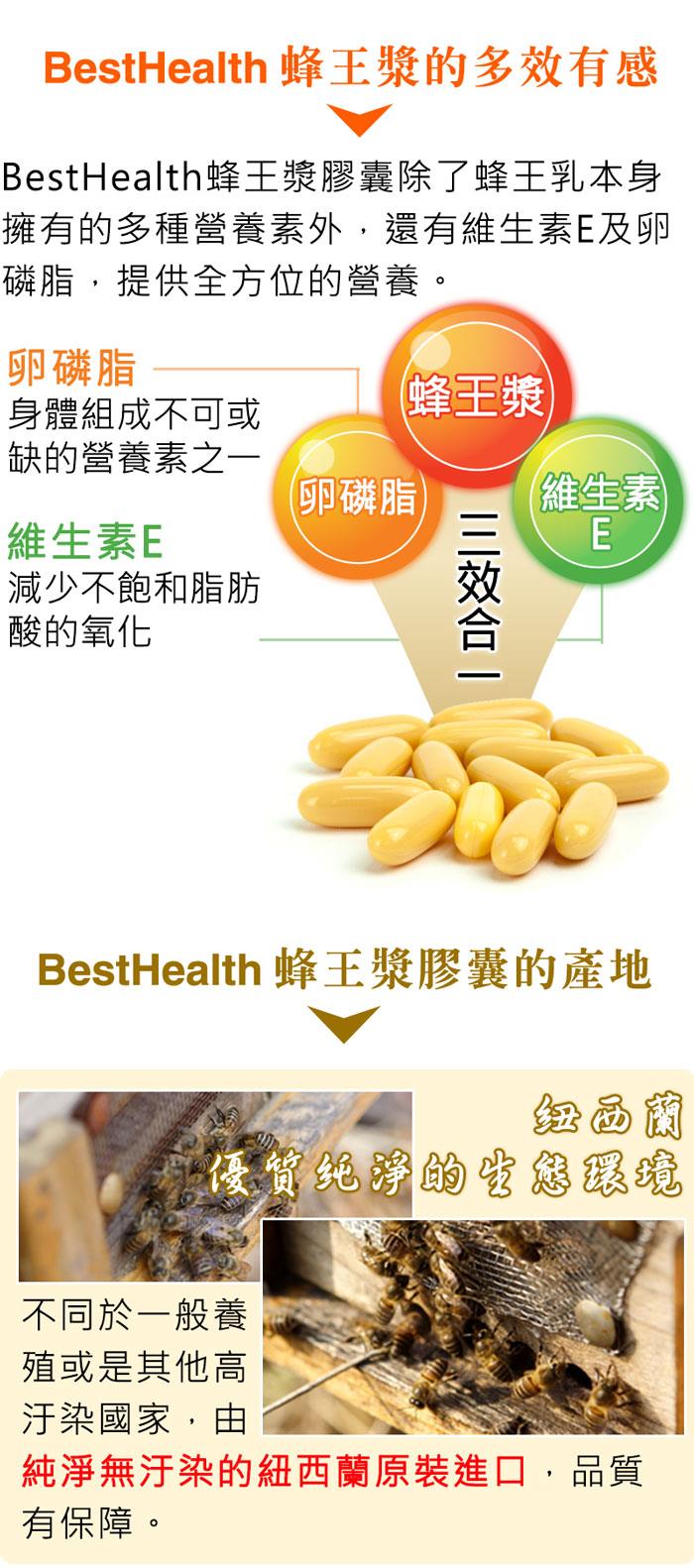 - 品名:【Best Health】紐西蘭蜂王漿膠囊60粒/盒x2入+紐西蘭Best Health深海魚油100粒/瓶x1入