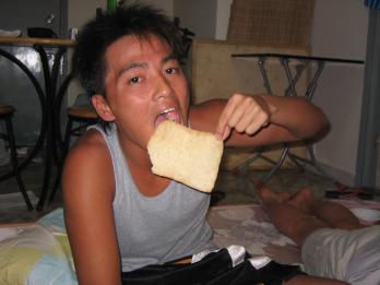 今朝比一個電話嘈醒。 一聽電話就聽倒老婆把聲﹕ "喂,你腳板向天~~" 我完全未訓醒,完全唔知老婆講咩野, 諗真d,原來我而家扒左o係度訓,腳板向天.... 老婆唔係洞悉天機,原來佢黎左我門...