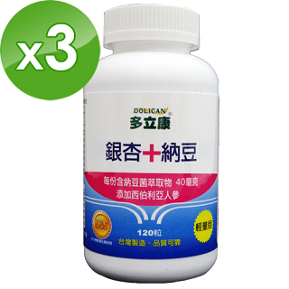 【多立康】銀杏+納豆*3瓶(120粒/瓶)