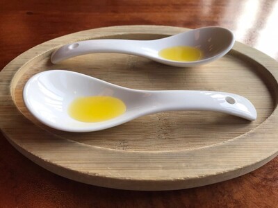 南園的早餐,叫做春鳥綠,首先是一匙亞麻仁油,接下來,一道一道可口美味上來