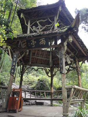 青城山山徑上有一座美美的小木亭,名字也蠻美的,叫雨亭。 走近一瞧:呵!這雨亭兩字,竟是于右老的墨蹟,這可難得...