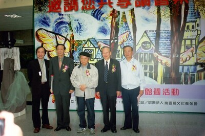 桃園市土地公文化館昨天舉行文學地景-桃園生活書寫特展,邀展出書法、新詩等多元作品,市長鄭文燦(中)等人昨天參與...