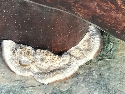 這椅子是水泥的還是木頭的呢?看起來像水泥糊的,但一低頭,下方看到長出...