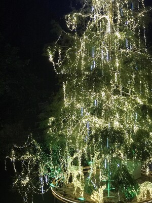 砂子扛了梯,把聖誕節的裝飾貼上了兩坪居的大窗