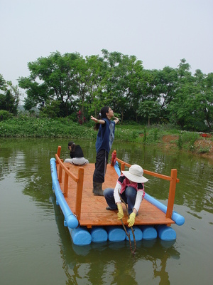 哇...好特別...還一艘膠筏呢...也還好有這樣一個大池子可玩....^___^