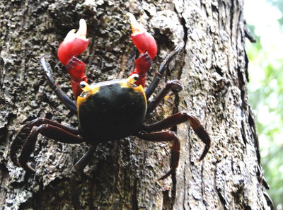 那種紅螃蟹可還真兇