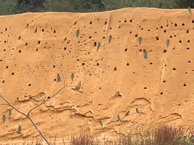 窗外,一個長長的黃土丘,老天爺,成群的栗喉蜂虎就在眼前