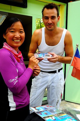 因為你們的單車環遊世界之旅太特別了,牙醫師聽了你們的故事,也願意幫忙負擔一半的費用,所以東尼只要付半價就可以. 連我們也覺得不可思議,到了附近的商店買禮物再附上台灣的風景明信片回贈牙醫師. ...