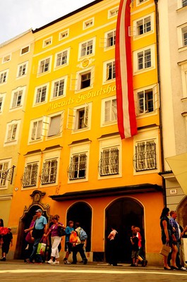 事實上,我們一進入雷斯登孜廣場,就看見了這座雕像的背影,沒想到,直到隔天才發現,原來他就是我們夢裡尋找百遍的音樂神童---莫札特.我們一進入市中心,映入眼廉就是河畔兩旁的古城與老街.雷斯登孜廣場.眼前...
