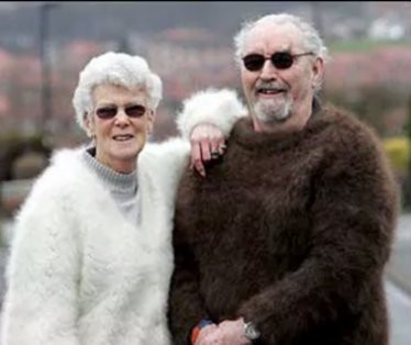 薩摩亞犬。拉布拉多犬。二犬幼年。照片-穿狗毛衣之老夫婦-[網摘]。