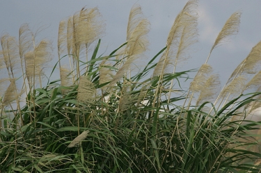 去歲與小舅們驅車造訪宜蘭,由台七線公路經過員山進入大同鄉。沿途的蘭陽溪泰雅橋或牛鬦橋下的溪床上,甜根芒抽穗放花幾如花海。在秋風的伴送裏白浪滾滾,活像一條白龍在淺灘上戲水。我們歇足下車小憩,邊喝花茶邊用點心,回到市區已經萬家燈火夜色矇矓矣。