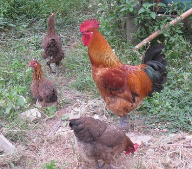 雞隻的翎毛顏色很多,有黃有黑也有綠,橘黃橘紅帶黑摻白長於尾部很是神氣。偶而我的玩興大發,抓起一隻當牠是龍頭耍弄。當我雙手觸及柔軟的雞毛,如似窩於毛毯舒適異常。我常將雞翻上翻下舞著,翻弄所造成的羽浪五顏六色令人眼花撩亂。