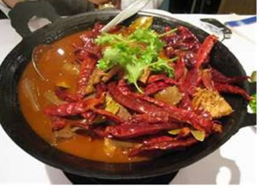 出鍋之羊肉濾除提味去腥佐料之後,再將羊肉放入鍋內,放入香料和辣油,添酒加水快火烹煮制沸滾,轉小火慢慢燉煮四個小時,香噴噴的羊肉干鍋,大功告成矣。此時之羊肉羊骨非常入味,入口鮮香甘潤辣味十足。夏天吃它大汗淋漓,沖個涼水澡渾身舒暢無比。冬季裏吃它,香辣熱力佈滿全身,溫暖舒適胃部暖熱舒服,保證一夜暖暖好睡到天亮。