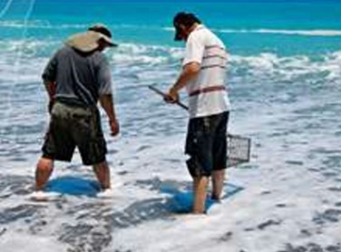 儘管浪花蟹的動作靈活,逃逸速度極快,但它仍逃不過奸詐的人類捕捉。當地人利用鐵網,綁以發臭之動物內臟或臭魚塊當誘餌。當那浪花蟹逐浪而至,立即被那腥臭之誘餌吸引而落網。浪花連綿來去,蟹兒前仆後繼,不用多久便可滿載而歸。昔日蟹量豐饒收穫多,如今因人多濫捕之後,捕獲量已明顯的減少多了。