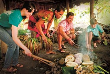 大溪地是火山岩地形,島上遍佈火成岩結構,猙獰崎嶇怪形怪狀,並富有地熱之利。當地人對於地熱利用極度發揮,尤其在燒烤食物上表現最佳。正因為甮的地熱資源,所以他們發展出一種很特殊的烹飪文化。每於烹煮食物之時,當地人習慣挖一地洞,將那燒得火紅的岩石丟入洞內,引燃地熱加以利用。然後將豬肉蔬菜依序放入洞內燻烤。