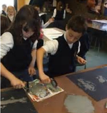 至於半成品上色之原則是先上輕色,然後漸層再上重色。這樣可避免色彩深淺混淆,失去原彩亮麗之色澤。上色時的運筆方向力求一致,如果色水過多需用棉花輕輕吸收乾淨。否則一旦造成色暈效果,所有心力毀之一旦矣。而棉紙或宣紙上拓之前,必須噴水維持溼度,噴水不可過度或有所不及。拓印開始須從魚頭延續拓向魚尾,全魚拓完之後讓它自然乾燥。