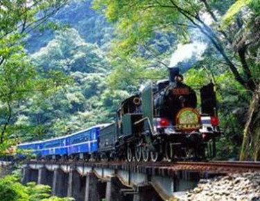 火車走過鐵橋之後速度更為飛快,它在軌道上盡情的奔馳,兩旁之樹木房屋與行人,全都快速的向後移動。初次嚐到火車奔馳的速度,母子倆滿臉充滿著好奇。突然之間又是一聲汽笛長鳴,車座內的乘客紛紛將車窗放下。我們莫名所以,只好也個著大家把車窗拉下。瞬間白天變成黑夜,眼前儘是一片黑暗,原來火車進入山洞了。火車在山洞內的馳騁,轟隆聲音更加雄壯,聽入耳內鼓膜震動很不舒服。