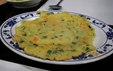 油熱麵漿倒入鍋中,吱吱聲響盈耳不絕。雖然剛只下鍋而已,麵香已經縷縷飄散入鼻。接著他在半熟的麵皮上,撒上厚厚的一層靑蔥。並於蔥面上再澆一層麵漿,一再翻面輕押慢煎,直至雙面煎得金黃色起鍋。老班長所煎的麵粉餅趁熱吃,這樣才可吃出它的香脆彈牙。迨其冷卻回軟之後,吃入口中又是一番風味。妙的是,不論熱吃或冷吃,麵餅在嘴裏越嚼越香。