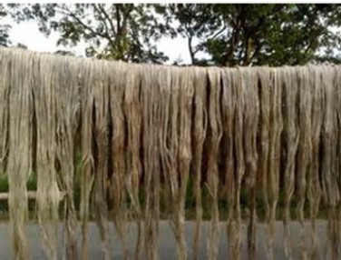 新鮮剝下的黃麻皮,必須槌去它的皮肉,留下來的黃麻纖維入水泡洗,然後在陽光下曝曬乾燥。而乾燥後之黃麻纖維外觀潔白十分耀眼,將它絞搓可以作成繩子。麻繩用途廣泛,早年它可是極為重要的綑綁使用之材料。黃麻採收時期我最高興,有工可打又有三餐加兩頓點心可吃。在那人浮於事的農村裏,採收黃麻是大家最想爭取的工作呢。況且當天的菜色不錯,比起節慶只有過之而無不及。
