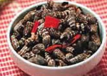 他人力大整盆端起翻拋數下,讓螺肉與鹽巴搭勻之後,再放入醬油味素,以及拍碎之蒜頭與辣椒,然後再倒一瓶米酒調味。阿庚抓幾顆要我試味,我拿一顆吸食其肉,鮮香甜辣滋味充滿口腔。味道之好讓我情不自禁的,一顆接著一顆吃個不停。阿庚見狀嘿聲阻止,他將螺絲整盆拿去市場叫賣。一小杯一元,瞬間就被買個精光。得款悉數交給我,他要我將他交給師娘買米菜。回途之中我問阿庚,這種螺絲是啥名字?他笑笑回答說:「它就是燒酒螺啦!」 【完】