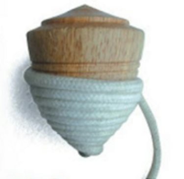 阿國用手鋸將陀螺鋸下,然後將雜貨店內買得之陀螺釘,利用火爐將它燒紅再用鐵鉗夾出插栽入陀螺底部。好不容易才將劍釘栽入,完工後我很有成就感,於是一手抓陀螺一手拿工具,高舉成一個大大的「V」字,嘴裡興奮的高喊:「這是我自己雕刻的陀螺哦!」連喊數聲之後,這才心滿意足的將工具收拾好。接著我在陀螺斗笠型頂部塗上一層厚厚的燭臘,據說這樣可以保護不被釘紮破裂。